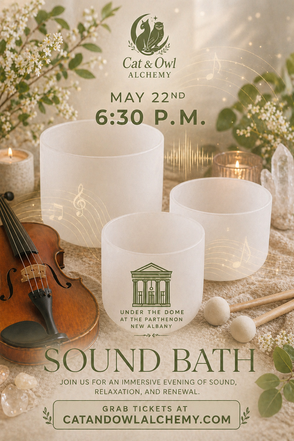 Sink into a weightless pause for your nervous system. This Community Sound Bath weaves live violin, crystal singing bowls, and the gentle support of anti-gravity chairs into a deeply restorative experience. Let the vibrations soften tension, quiet the mind, and carry you somewhere calm and steady. No experience needed, just come as you are and receive.